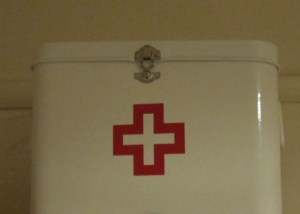 It strikes me not a lot has changed in my decorating skills though. I’ve got the explosive styling of an angry teenager – gender undetermined – and the paint job of a child. I decide the place needs a woman’s touch, and so set about tarting up my unfathomably-purchased chandelier (because every chandelier needs further adornment, right?) and making a medical box, like a grown-up would do. Um, THERE.