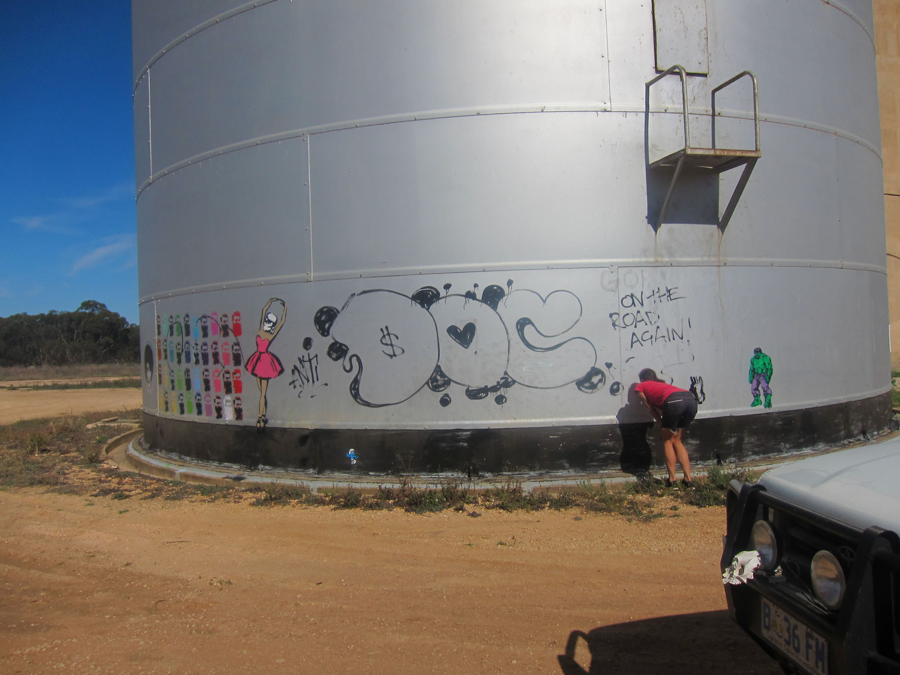 Pinnaroo (pop. 900) is a no-nonsense, dusty sort of a town, peppered with railway tracks, silos, and the biggest specimens of farming equipment I’ve ever seen. It’s a town that sees itinerant workers passing through, although since the spud wash* closed a couple of years back, it’s been struggling a bit.