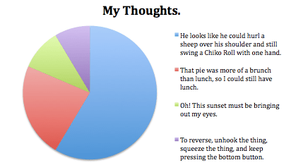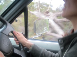 From Big W I purchase a chamois, a squeegee and a bucket, and set to work in my driveway. I give the shark a nice soapy bath and rub down, and then we both have a shower with the hose. Even the house has a shower, on account of it being inconveniently situated under a wattle tree. Who invented wattle trees, anyway? And why put one in an area where wandering around in furry socks is a necessity?