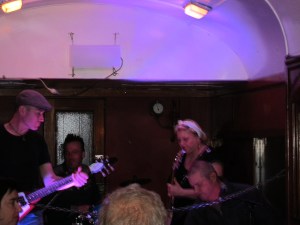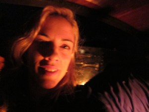 As a glamorous DJ spins ‘Smokey Joe’s Cafe’ and ‘One Bourbon, One Scotch, One Beer’, we’re urged to eat biscuits and candy canes, until there are crumbs all over my depiction of Dolores’ perfect ski-jump nose.